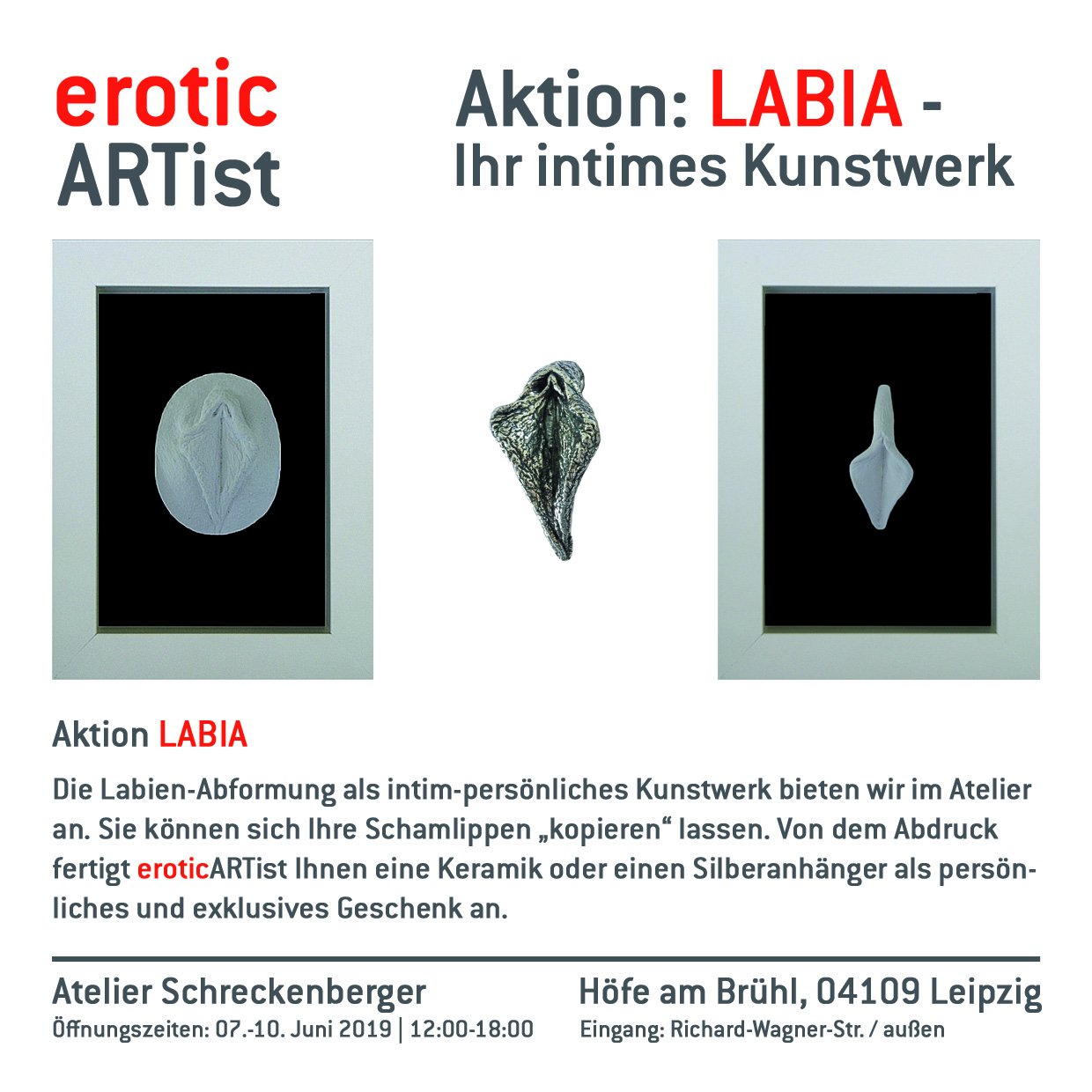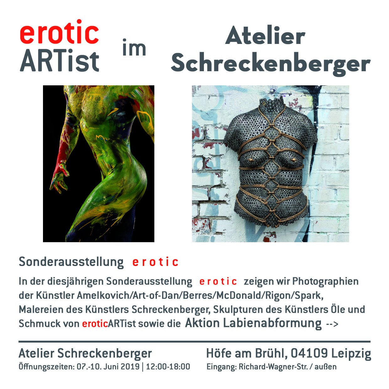 At the WGT 2019, eroticARTist will be showing the special exhibition e r o t i c at Atelier Schreckenberger.